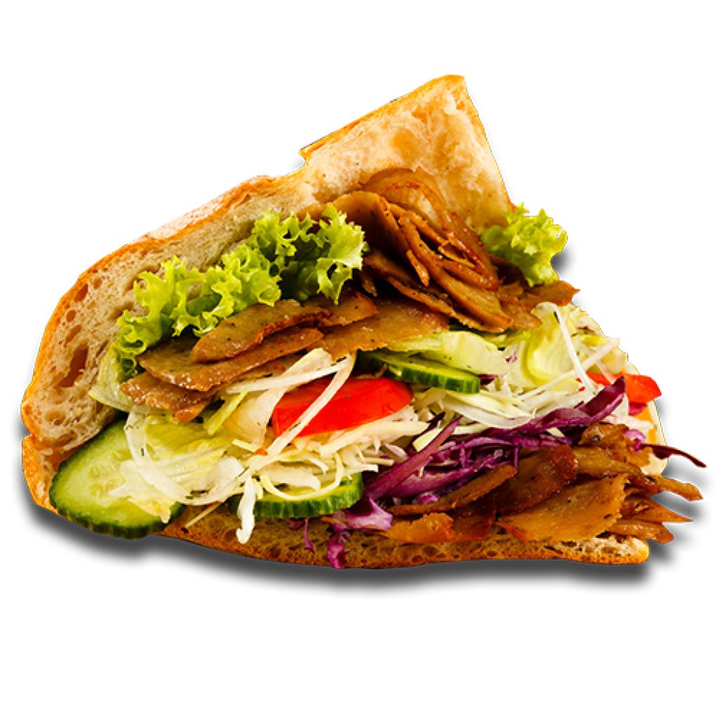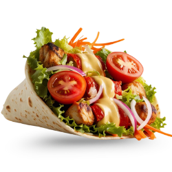 Warm stokbrood belegd met kip, groenten en saus naar keuze