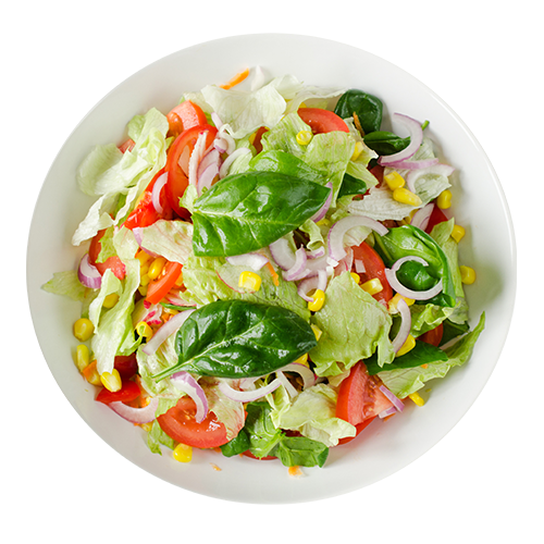 Sla, lekkerbek (visfilet) met groenten en saus naar keuze